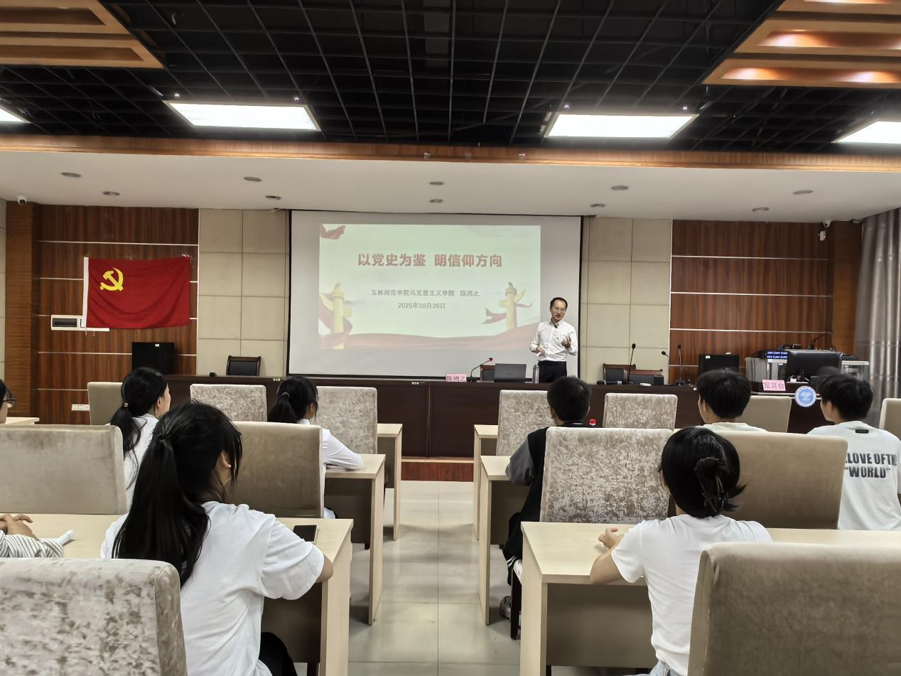 开班第一讲特邀马克思主义学院陈鸿之老师作题为《以党史为鉴 明信仰方向》的专题辅导。陈老师以生动翔实的史料、深刻透彻的分析,引领学员们重温党的奋斗历程与伟大精神,阐述历史中所蕴藏的信仰力量与方向指引。讲座深入浅出,思想性强,有效帮助学生干部从党史中汲取智慧、坚定信念、明确责任。