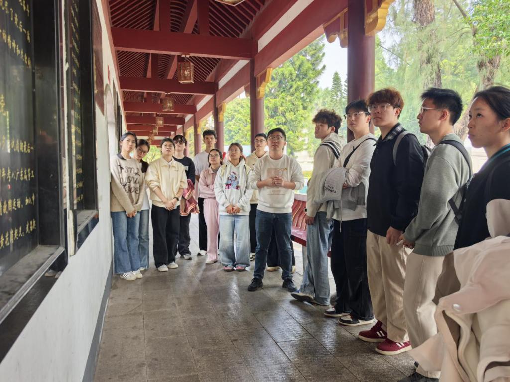 12月7日,我院师生党员代表在周志强老师的带领下,走进玉林市人民公园,围绕朱锡昂烈士的事迹开展了一场别开生面的沉浸式党课。周志强老师不仅深情讲述了朱锡昂同志的革命历程与崇高精神,更创新性地引导师生从学科视角进行思考与联想。