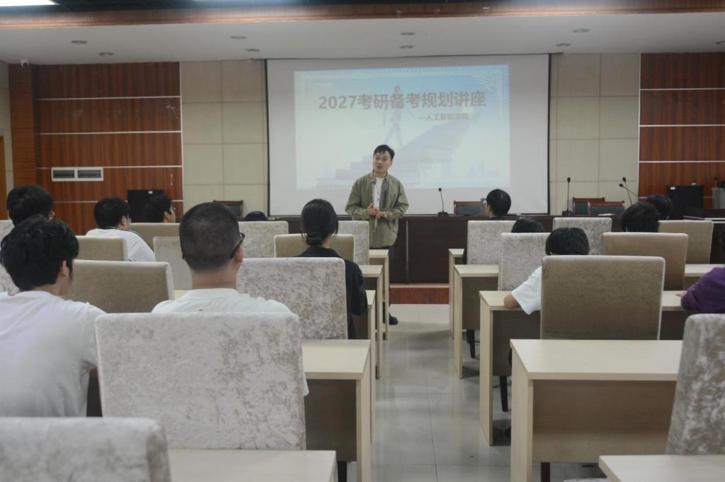 讲座内容全面详实,涵盖考研全过程关键环节。曾金老师首先解读了最新考研政策及关键时间节点,并深入解析了计算机相关专业的院校选择策略,他分析了不同院校的专业特色与选拔要求,客观比较了学术型硕士与专业型硕士在培养目标、发展路径等方面的差异。在备考策略方面,曾金老师系统阐述了公共课与专业课的科学复习方法,制定了循序渐进的备考方案。同时,他对少数民族专项政策进行了详细说明,帮助学生全面了解相关政策信息。