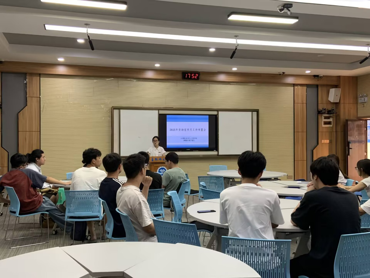 5月12日下午,我院于我校东校区厚德楼1-501智慧教室召开2025年“学生资助政策宣传月”活动布置会。学院全体生活委员参加此次会议,会议由我院辅导员丘海冰主讲。